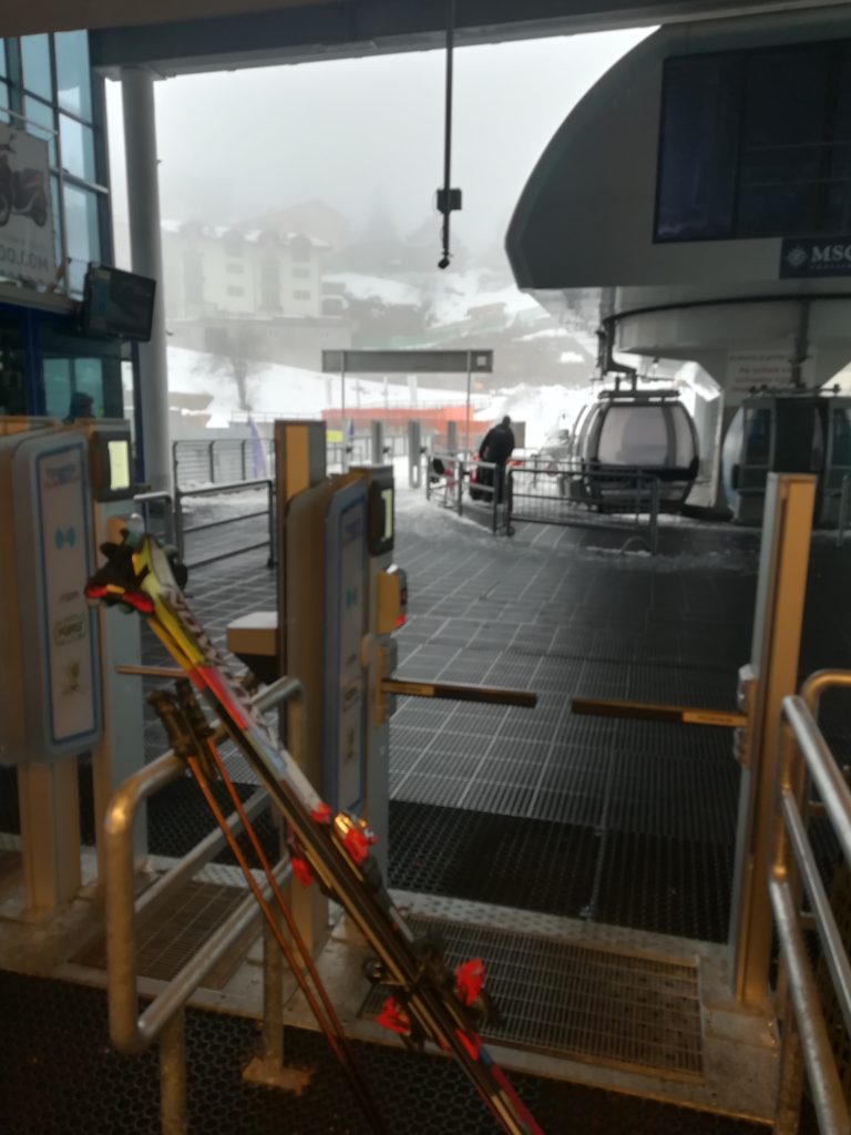 Poi finalmente, arrivano a “imbarcarsi” sulla cabinovia: e qui un altro problema: loro sono piccoli, non è pensabile che riescano ad infilare i loro sci negli appositi spazio all’esterno della cabina, entrano rimanendo “abbracciati” ai loro attrezzi, qualche “scio” si mette di traverso, una racchettina cade per terra … ogni maestro si sforza di farli sistemare in ordine: alla fine sono entrati! Si controlla il loro numero, i loro sci, le loro racchette. Una faticata! E che rischio, anche, lasciatemi dire; che un piccolino sia schiacciato dalla folla, che perda il contatto con il proprio maestro, che si scoraggi. Insomma, cosa ci vuole a prendere atto di questo aspetto?