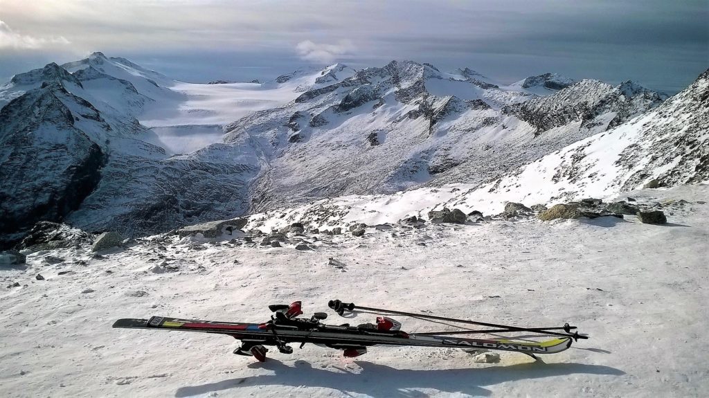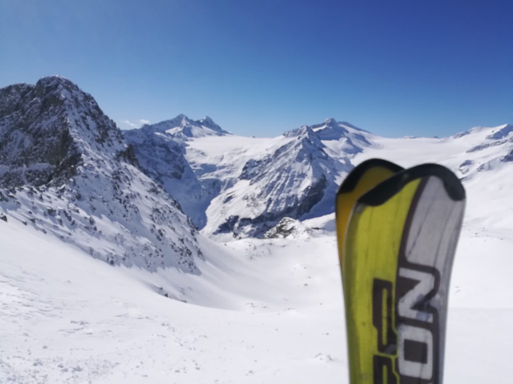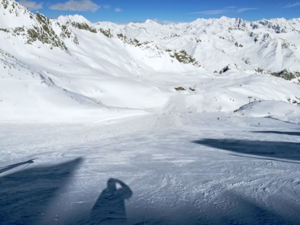 Per non spaventarvi, ecco lo stesso ghiacciaio nel 2018 e, alle mie spalle, le piste, bene innevate grazie alla cura degli impiantisti ed a qualche provvidenziale nevicata.
