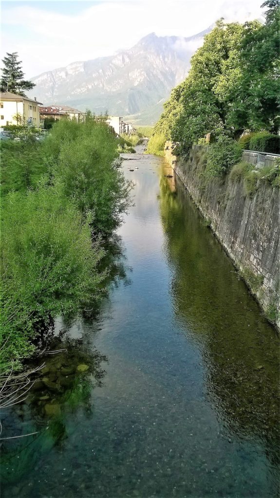 Tu nasci ove aria rinfresca. / Poi … / scendi la china / scoscesa di valle tedesca / qual liquido velo nuziale / che adorni la Sposa Atesina / e rechi in pianura / la figlia del suolo innevato / i fulgidi pesci d’opale / il tenue lenzuolo / che dona ristoro all’arsura / di ninnula cuna / il manto di brezza / che stendi alla luna / ed olezza / e dolce assopisci il bambino / cantandogli la ninna nanna / che i monti ti hanno affidato.