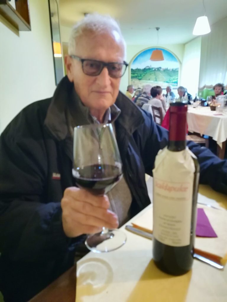 In un atttimo ho rivisto una scena antica: S. Angelo in Colle (Siena), splendido paesino-frazione “vicino al quale” c’è Montalcino, patria del mio babbo. Il “trattore” (soprannominato “Buonanotte” e come diversamente, sennò?) predispone la merenda per alcuni avventori: pane, affettati, formaggi. Poi alza il fiasco del vino, lo “analizza” controluce per registrare quanto vino contenga. Lo stesso gesto farà al momento del conto, per valutare la quantità di vino bevuto e quindi da pagare.