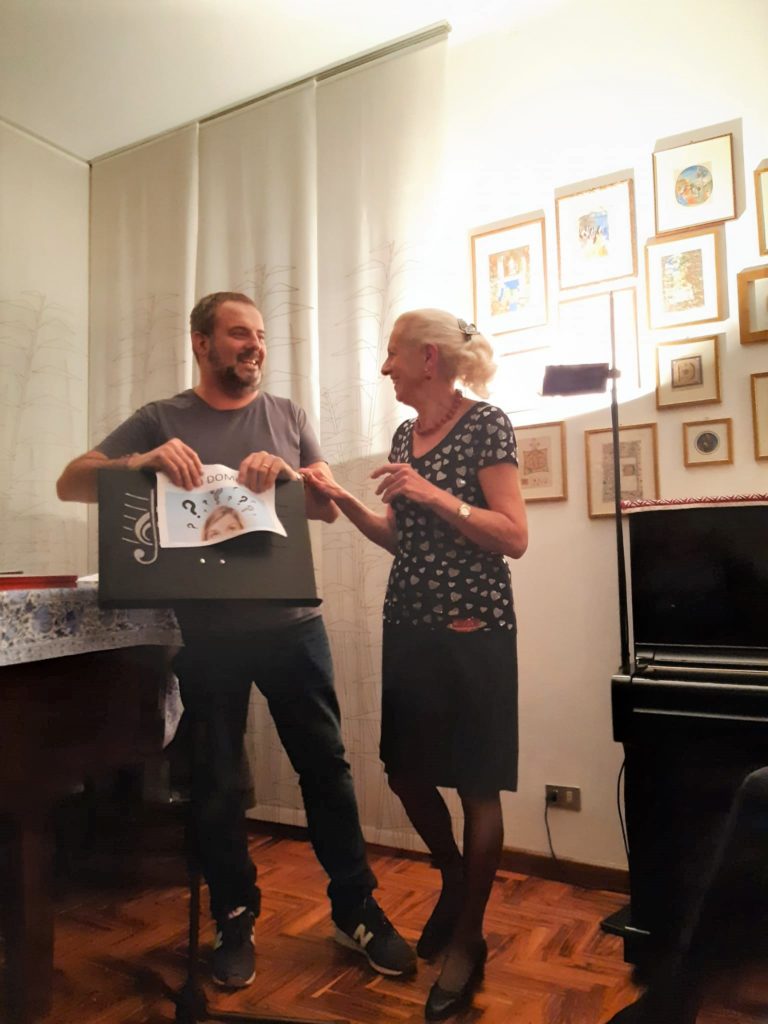 … e io che non c’ero! Ma si può? Infatti ero trattenuto altrove da precedenti impegni (successivamente) assunti – si dice così? – perché usualmente le nostre serate sono di lunedì, ma come si faceva a farla la sera della Befana? Evvabbè … allora mi sono organizzato come segue: mi sono fatto mandare il programma e le foto della serata e ho scritto un post “in contumacia”, nel senso che il blogger scrittore responsabile era assente! Prima parte della serata pianistico-canora: Cristina al pianoforte e Sergio Runcher voce (basso). Ecco il programma eseguito: