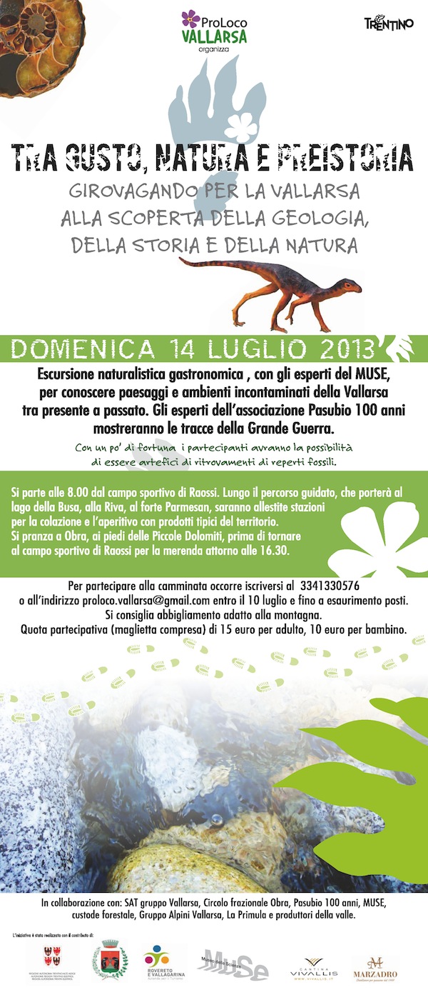 a�?Tra gusto natura e preistoria, girovagando per la Vallarsa a alla scoperta della geologia, della storia e della naturaa�?, si svolgerA� in Vallarsa il 14 luglio 2013.