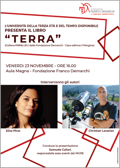 Alla presentazione del libro TERRA interverranno gli autori Christian Lavarian ed Elisa Piras e l’incontro, organizzato nell’ambito dei “Venerdì di cultura” dell’Università della terza età e del tempo disponibile rivolti a la popolazione, sarà introdotto e condotto da Samuela Caliari, responsabile area eventi del Muse.