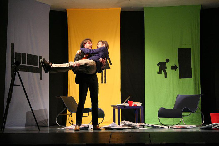 Non ca��A? bisogno di scenografia, risolta con teli colorati che rappresentano le porte delle stanze della casa-studio di Andy & Norman, perchA� ad emergere deve essere soprattutto il rapporto che caratterizza i due protagonisti e che A? stato alla base di questa scommessa teatrale e del nostro lavorare insieme cioA? la��amiciziaa��