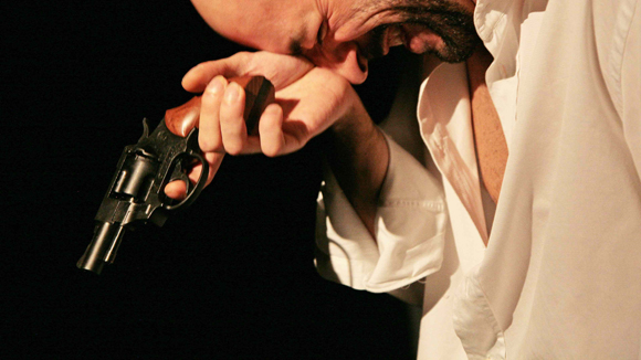 a�?Una stanza vuota, una cornice priva di tela sospesa nel vuoto, un uomo ben vestito, la sua valigia, una segreteria telefonica; un silenzio artificiale, fitto di rumori impercettibili e indeterminati, dalla segreteria gli unici segni umani dal mondo esterno.