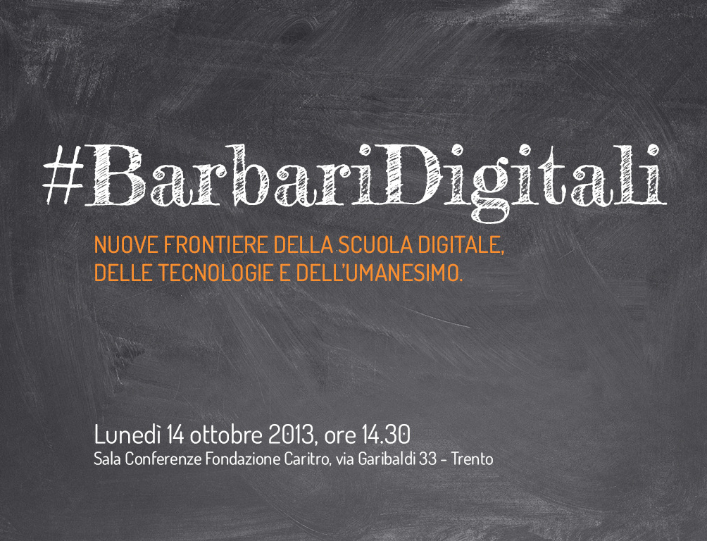 La a�?rivoluzione digitalea�? A? ormai in atto e i barbari sono tra noi, nella vita quotidiana, al lavoro, nella scuola e nel tempo libero. Ma chi saranno in realtA� questi barbari digitali ? Saranno forse quegli studenti che non vogliono piA? leggere i classici della letteratura, non si iscrivono al Liceo Classico, leggono e scrivono solo frasi lunghe 140 caratteri, a�?postanoa�? banalitA� nei social network, non riescono a fare un ragionamento articolato nA? ad esprimere le loro emozioni profonde, hanno difficoltA� nella��attenzione e nelle relazioni sociali? O piuttosto saranno dei a�?barbaria�? gli insegnanti che non vogliono usare i computer e i tablet, hanno difficoltA� a distinguere tra un motore di ricerca ed un social network, non sanno che molte opere letterarie sono accessibili nel web gratuitamente, trovano ancora misterioso un ipertesto e si trovano tutti i giorni a combattere con i a�?nativi digitalia�? (i loro studenti)?