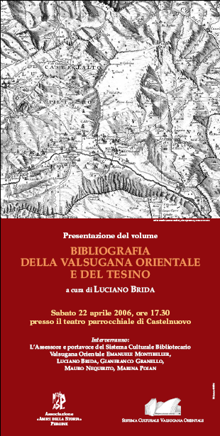 Sabato 22 aprile 2006, all’interno del calendario delle manifestazioni della "Giornata mondiale del Libro", verrà presentato il libro dal titolo:"Bibliografia della Valsugana" a cura di Luciano Brida.