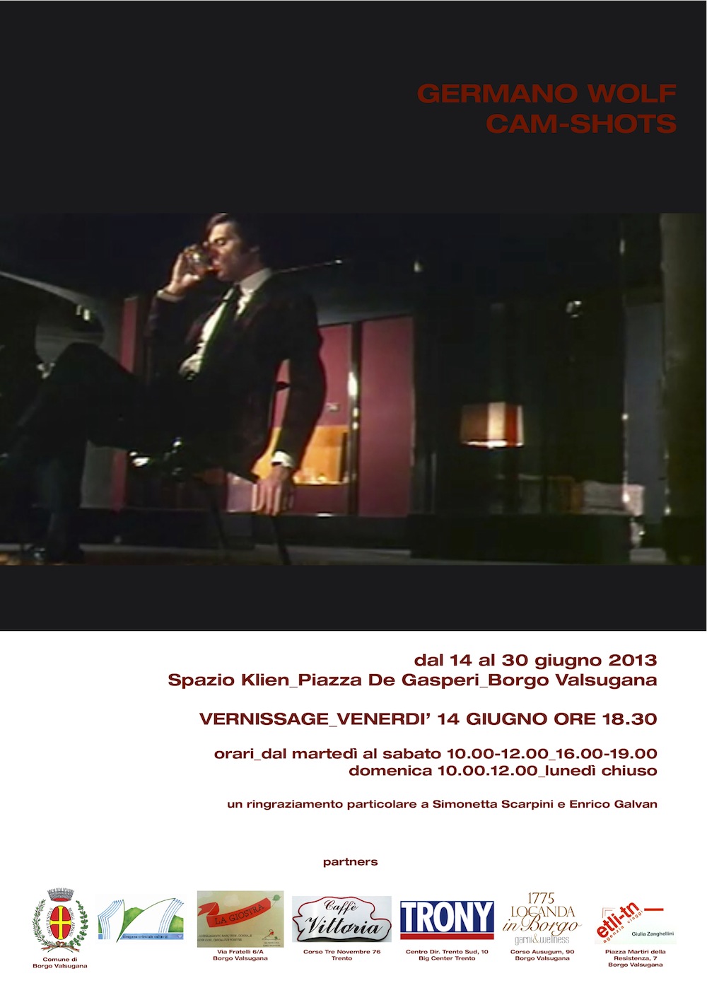 a�?CAM-SHOTSa�?, a cura di Germano Wolf 14-30 giugno 2013, Borgo Valsugana, Spazio Klien del Municipio, Piazza De Gasperi 20 Vernissage: venerdA� 14 giugno 2013, ore 18.30. Orari: martedA�-sabato ore 10-12 e 16-19; domenica ore 10-12; lunedA� chiuso; ingresso libero.