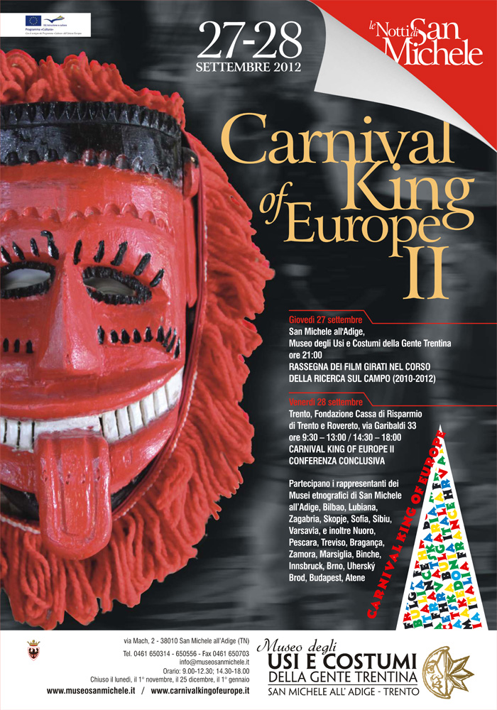 Nella��ambito del progetto europeo a�?Carnival King of Europe IIa�?:A�giovedA� 27 settembre, dalle ore 21, alA�Museo degli Usi e Costumi della Gente TrentinaA�di San Michele alla��AdigeA�saranno proiettati i film girati nel corso della ricerca sul campo tra il 2010 e il 2012.