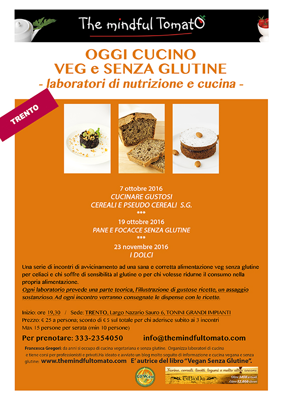Venerdì 11 ottobre alle ore 18,00 presso la libreria Mondadori di Via San Pietro a Trento, terrò il primo di 3 incontri dedicati alla cucina veg e senza glutine. Gli incontri avranno la durata di circa un’ora e si svolgeranno in forma di chiacchierata con spazio per le domande e …
