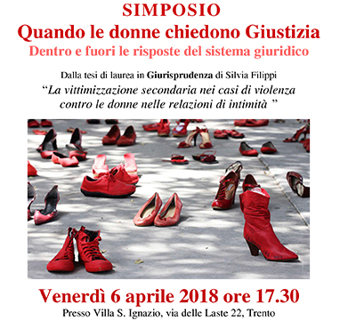 Che cosa chiedono le donne alla Giustizia? VenerdA� 6 aprile 2018 ore 17.30 – Villa S. Ignazio, via delle Laste 22, Trento