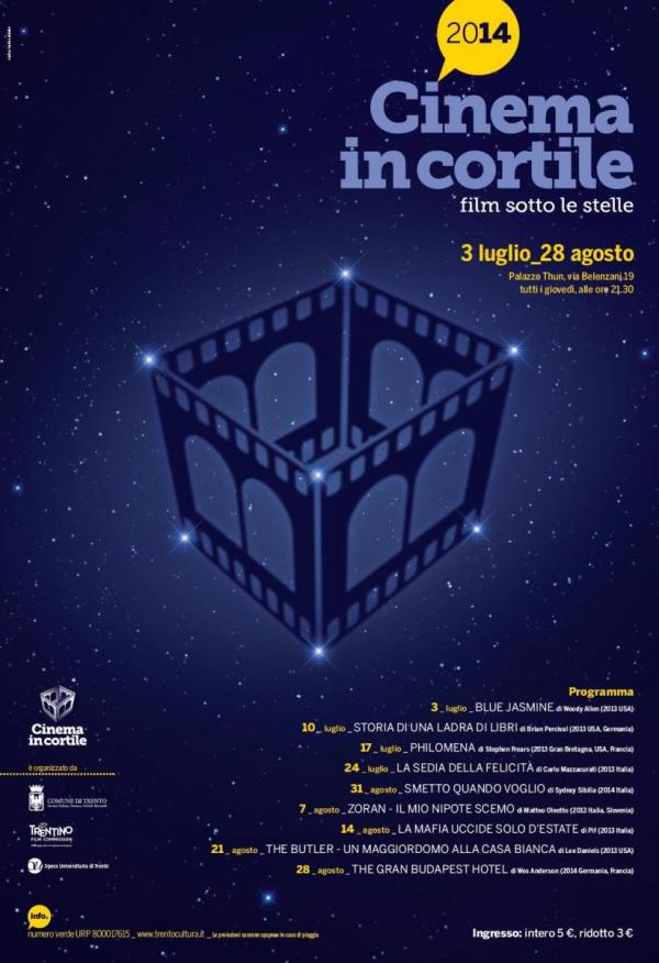 CINEMA IN CORTILE 2014: la programmazione di luglio e agosto.A�Film sotto le stelle a Palazzo Thun (via Belenzani 19, Trento). Ore 21.30