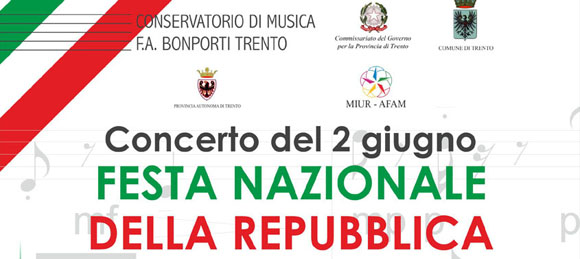 Sabato 2 giugno 2012, festa Nazionale della Repubblica, alle ore 21.00 a Trento al Castello del Buonconsiglio a�� Giardini di Castelvecchio, l’Orchestra del Conservatorio di Trento e Riva del Garda Bonporti, si esibirA� nel Concerto a�?Giorno della Repubblicaa�?.