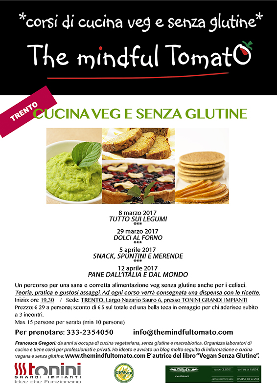 Ecco gli appuntamenti con la cucina Veg e Senza glutine – anche per i celiaci – a Trento nei mesi di marzo ed aprile, conA�ricette nuove: