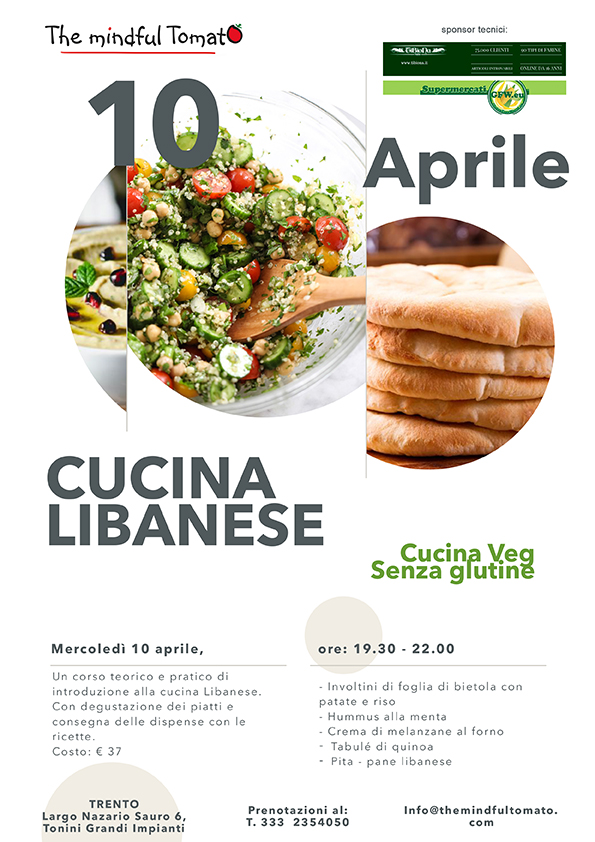 CUCINA LIBANESE, 10 APRILE 2019, ore 19.30-22.00, TRENTO