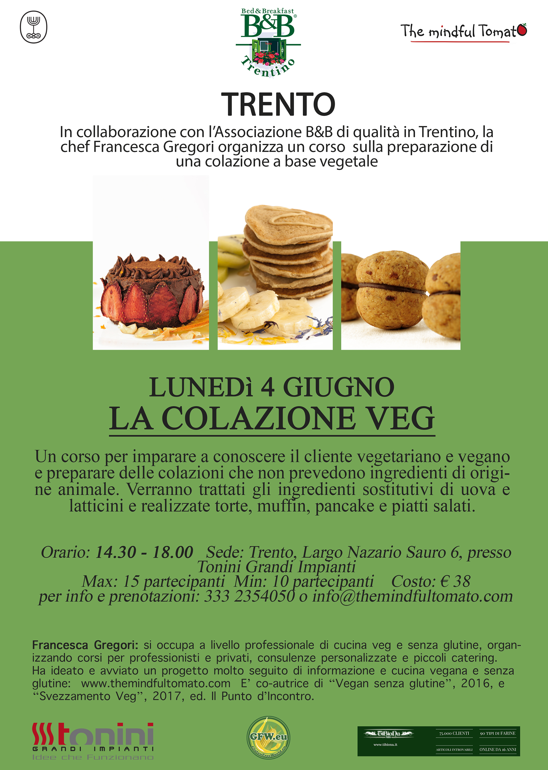 Un corso organizzato in collaborazione con l’Associazione B&B di qualità in Trentino e rivolto a gestori di B&B e professionisti per realizzare torte, muffin, pancakes e piatti salati veg e senza glutine.