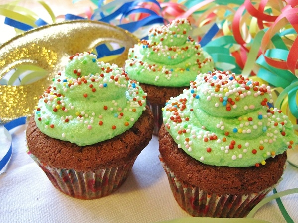 Cupcakes con i coriandoli: soffici tortine al cacao con frosting colorato per festeggiare il carnevale in allegria insieme a James Ensor e le sue maschere