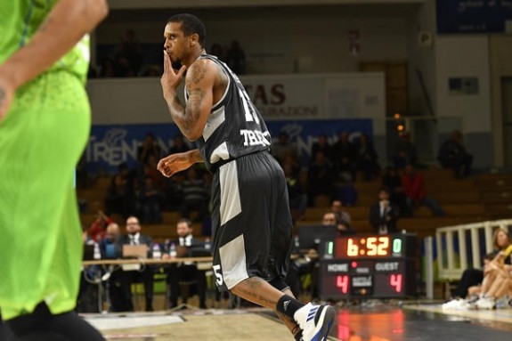 Dolomiti Energia Trentino: Franke ne, Sutton 23 (7/9, 1/2), Silins 6 (1/2, 1/2), Baldi Rossi 4 (1/2), Forray 9 (0/4, 3/4), Flaccadori 6 (1/3, 0/2), GutiA�rrez 18 (3/6, 3/5), Gomes 15 (2/3, 3/8), Behanan 5 (1/2, 0/1), Lechthaler ne, Shields 2 (1/5, 0/2). Coach Buscaglia.