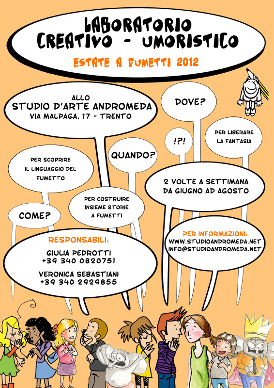 studioandromeda@gmail.com (specificando in oggetto Un’estate a fumetti_Laboratorio Creativo Umoristico per bambini e ragazzi)