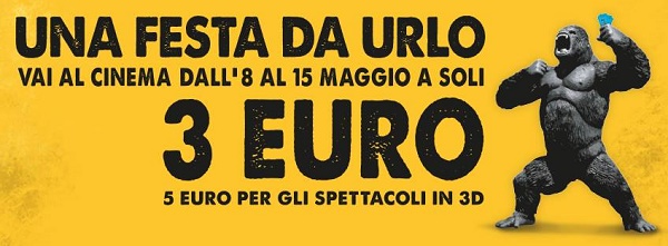 Dopo il successo della��anno scorso, torna la FESTA DEL CINEMA. Dalla��8 al 15 maggio il biglietto per la��ingresso nelle sale cinematografiche di tutta Italia sarA� a prezzo ridotto: 3a�� per i film in 2D e 5a�� per quelli in 3D.