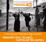 Il progetto fotografico su Francesco Cito sarA� ulteriormente impreziosito dal fatto che, sempre nella serata di lunedA� 12 aprile, ad ore 20.30, presso la��Auditorium scuola Don Milani di Pergine (Via Monte Cristallo), la��autore presenterA� al pubblico, con ingresso gratuito due suoi interessantissimi lavori:a�?Immagini sulla��Islama�? e a�?Cartoline da Napolia�?.