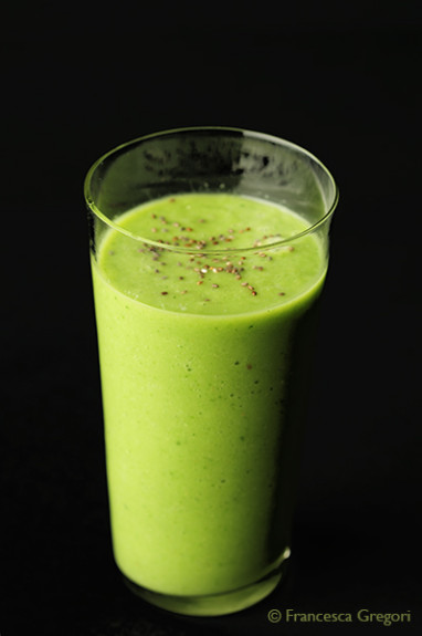 La parola frullato sembra non andare piA? di moda -ormai si dice smoothie perchA� A? “smooth” ovvero liscio, morbido e ben amalgamato- ma a noi piace usarla per la sua immediatezza. Quello che vi propongo oggi e che alcuni di voi hanno assaggiato in anteprima al laboratorio di cucina e nutrizione veg dello scorso 11 marzo, A? un frullato che A? un concentrato di frutta e verdura di stagione e quindi eccezionale da un punto di vista nutritivo.