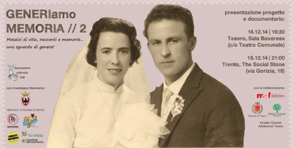 Al via la presentazione del documentario prodotto da A�GENERIamo memoria // 2, organizzata dall‘Associazione culturale Te@ con doppio appuntamento:A�A�domenica 14 dicembre alle 16:30 nella Sala Bavarese di Tesero, A�eA�lunedA� 15 dicembre alle 21:00 a The Social Stone, Trento