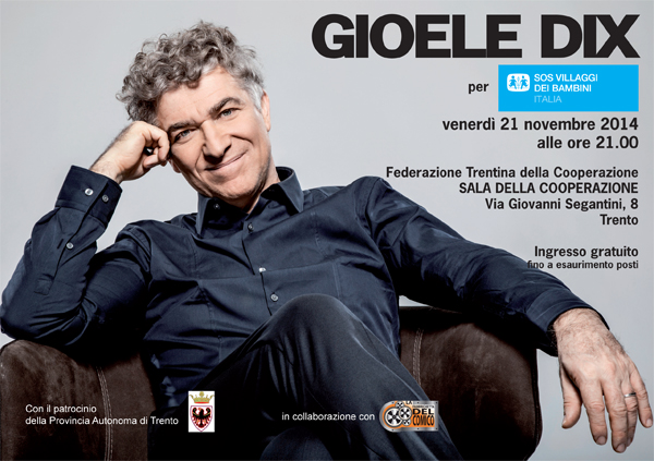 Lo spettacolo di Gioele Dix, condotto da Andrea Midena, avrA� come filo conduttore le attivitA� di SOS Villaggi dei Bambini in Burkina Faso e in particolare il Programma di Rafforzamento Familiare dedicato alla comunitA� di Ouagadougou, realizzato con il sostegno della Provincia Autonoma di Trento.