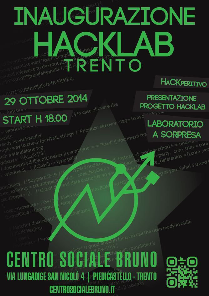 MercoledA� 29 ottobre dalle 18 l’inaugurazione del nuovo spazio HackLab all’interno degli spazio del Centro sociale Bruno