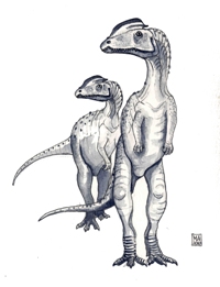 Le tracce sono costituite da tre orme tridattile robuste con artigli alle estremitA� delle dita. Lunghe circa 30 centimetri, sono parzialmente sovrapposte: le hanno lasciate due dinosauri carnivori bipedi di medie dimensioni e di misure consistenti (due metri di altezza, 7-8 di lunghezza, 400 kg di peso), appartenenti al genere Dilophosaurus.