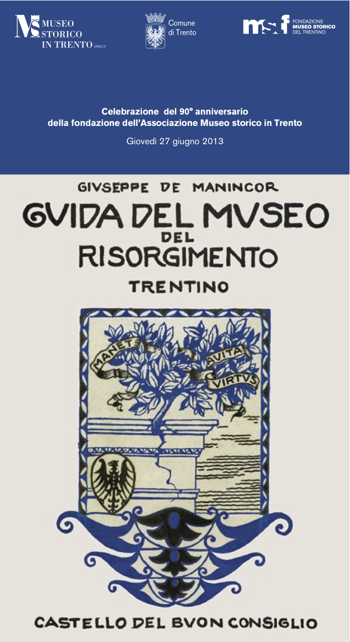 GiovedA� 27 giugno alle 17.30, presso la Sala del Consiglio comunale in via Belenzani a Trento, l‘Associazione Museo storico in Trento, il Comune di Trento e la Fondazione Museo storico del Trentino invitano alla celebrazione del 90A� anniversario di fondazioneA�dell’Associazione Museo storico in Trento. Presenti, tra gli altri, il sindaco di Trento Alessandro Andreatta, il vicepresidente del Consiglio comunale di Trento Antonio Coradello e la��assessore alla��istruzione e sport della Provincia autonoma di Trento Marta Dalmaso.