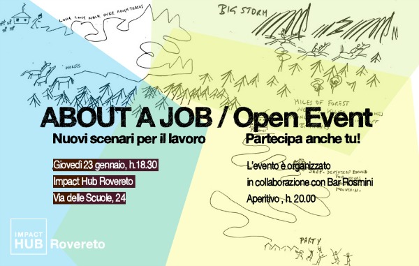 Giovedi 23 Gennaio 2014 alle ore 18.30 Impact Hub Rovereto presenta “ABOUT A JOB. Nuovi scenari per il lavoro”, un incontro che vuole affrontare in maniera innovativa, libera e soprattutto partecipata alcune tematiche legate al mondo del lavoro.