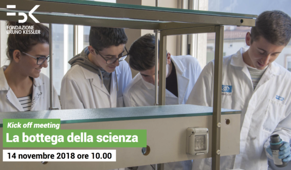 Mercoledì 14 novembre presso la sede di via S. Croce 77 della Fondazione Bruno Kessler, con inizio alle ore 10, si terrà l’evento di lancio del progetto di alternanza scuola-lavoro “La bottega della scienza”, un innovativo laboratorio di ricerca partecipata che coinvolge la cittadinanza locale, il mondo della scuola e quello della ricerca.