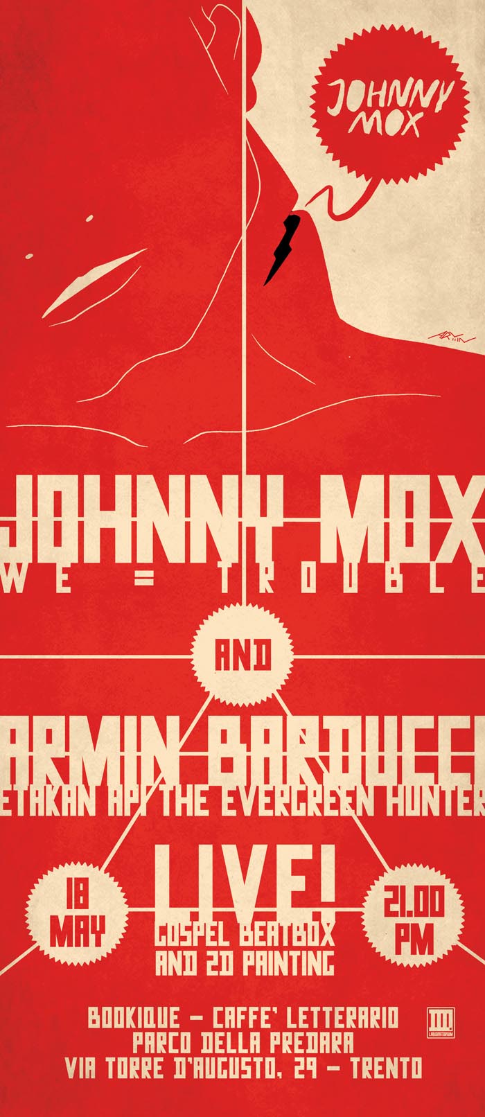 Una collaborazione, quella tra Mox e Barducci, cominciata proprio con la realizzazione dell’artwork di “We=Trouble” il disco uscito in aprile in Italia e in Europa per Whosbrain Records / Musica per Organi Caldi e che venerdA� 18 maggio alla Bookique di Trento porterA� i due a confrontarsi in un live “disegnato”.