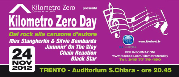 Un evento per diffondere la cultura a km zero nella musica, dal rock alla canzone da��autore, con la partecipazione di Max Stangherlin & Silvia Bombarda, Jammin on the Way, Chain Reaction e Black Star.