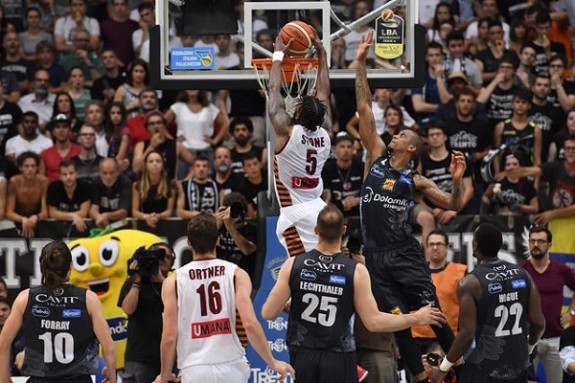 L’assenza di Sutton non frena i trentini che per 25′ mettono la Reyer alle corde: poi Stone e i troppi errori bianconeri dalla lunetta permettono ai veneti di volare sul 2-1 nella serie