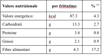 Tabella nutrizionale Mini frittata vegan alle verdure