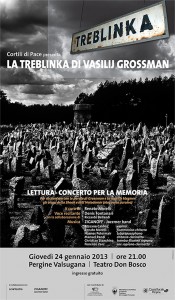 La versione integrale dello spettacolo “La Treblinka di Vasilij Grossman” si svolgerA� a Pergine il 24 gennaio, ore 21:00 al Teatro Don Bosco (musica ZIGANOFF), il 25 gennaio ore 17:30 a Trento, presso il Palazzo Geremia e il 27 gennaio, ore 20:00 a RevA? al Auditorium scuole medie, lo spettacolo sarA� in forma ridotta.