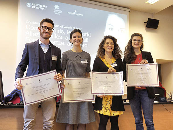 La premiazione si A? svolta al Dipartimento di Sociologia e Ricerca sociale della��UniversitA� di Trento nella��ambito del convegno a�?Come on girls, leta��s work! Allez les filles, au travail! Forza ragazze, al lavoro!a�?, proseguito anche con la presentazione degli altri tre migliori paper di ricerca selezionati da una commissione internazionale: Stefano Cantalini (Does the birth of a child affect careers equally? Education, timing of parenthood and occupational career among male and female in Italy), Daniela Piazzalunga (Till Money Us Do Part: Property Division at Divorce and Married Couplesa�� Time Use Behaviour) e Annalisa Frigo & Eric Roca (Roots of Gender Equality: The Persistence effect of the Beguinages on Attitudes Toward Women).