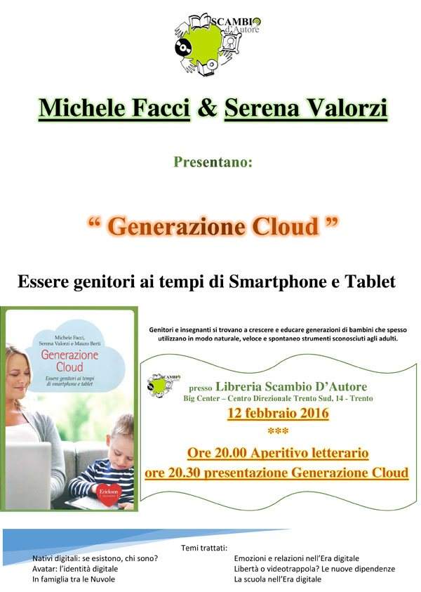 Essere genitori ai tempi di Smartphone e Tablet -A�Presso Libreria Scambio Da��Autore Big Center a�� Centro Direzionale Trento Sud, 14 – Trento 12 febbraio 2016