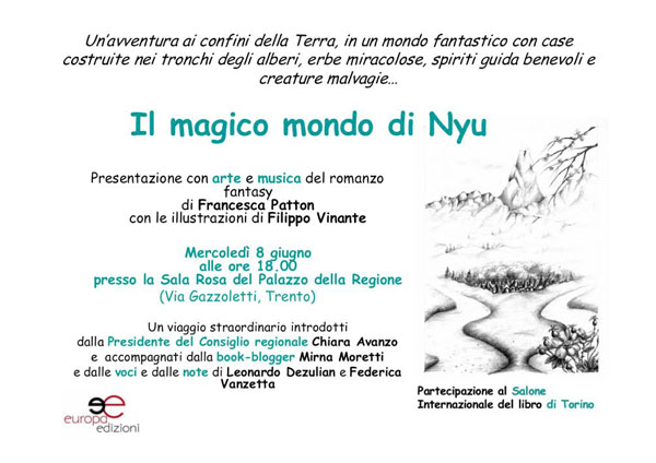 Alla conclusione dei librincontri della nostra Mirna Moretti, la giovane A�Francesca Patton ci parlerA� del suo libro Fantasy …alla Sala Rosa della Regione, sempre mercoledA� 8 giugno alle ore 18.00.