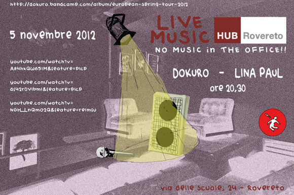 Ritorna Live at the hub a�� No music in the office la��evento musicale organizzato da The Hub Rovereto in collaborazione con la��Assessorato alla ContemporaneitA� del Comune di Rovereto e Locos Bar.