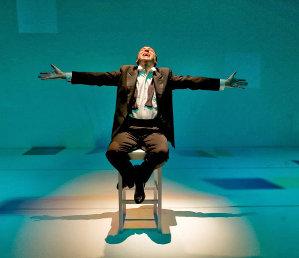 A�La scenografia di Giovanna Angeli e di Luca Ligato A? ricercatamente scarna e tuttavia possente nella sua essenzialitA�, avvolta dalle luci cangianti di Alessandro Tinelli, che interpretano umori, paure, segreti, malinconie, veritA� ed esplosioni di vita. Uno sgabello centrale e lui, Corrado da��Elia, la��Autore, il Regista, l’Attore.
