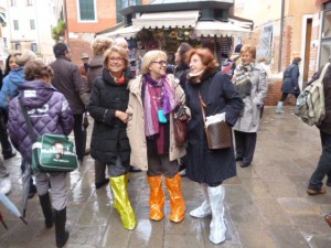 Non ci lasciamo intimorire da un po’ d’acqua alta che si insinua tra campielli e calli, ma  compriamo da un pakistano le sovrascarpe alte, colorate e ci divertiamo a raggiungere questa bellissima casa-museo sul canal grande.