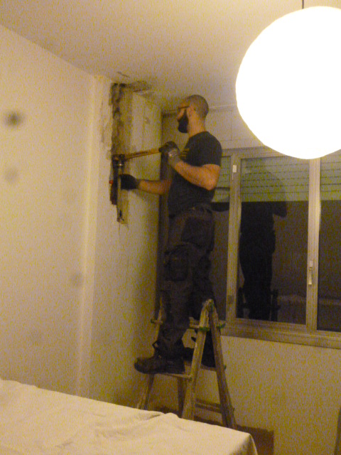 Lavori in corso ancora che sembrano infiniti, il tubo ricoprente gli altri tubi non è  della misura giusta…ma lo si recupera. Sporge però ed allora si livella. E se continua a “nevicare” intonaco dal soffitto (questo è un altro punto) basta prendere un aspirapolvere, mi ha detto il pittore, e aspirapolverare. Non ho capito se devo farlo io….forse.