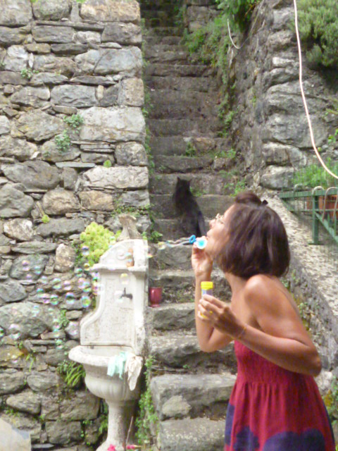paesello natio di mio marito. Dapprima un mese, poi due alfine quando lui  ristrutturò la vecchia casa di famiglia  praticamente tre mesi e oltre… Della sua  vecchia casa alta e stretta che si trova nel “centro storico†(in sostanza il carruggio dove non passano le automobili) Piero ha mantenuto e risistemato per noi soltanto il terzo e quarto piano mansardato. E il giardinetto a fasce.