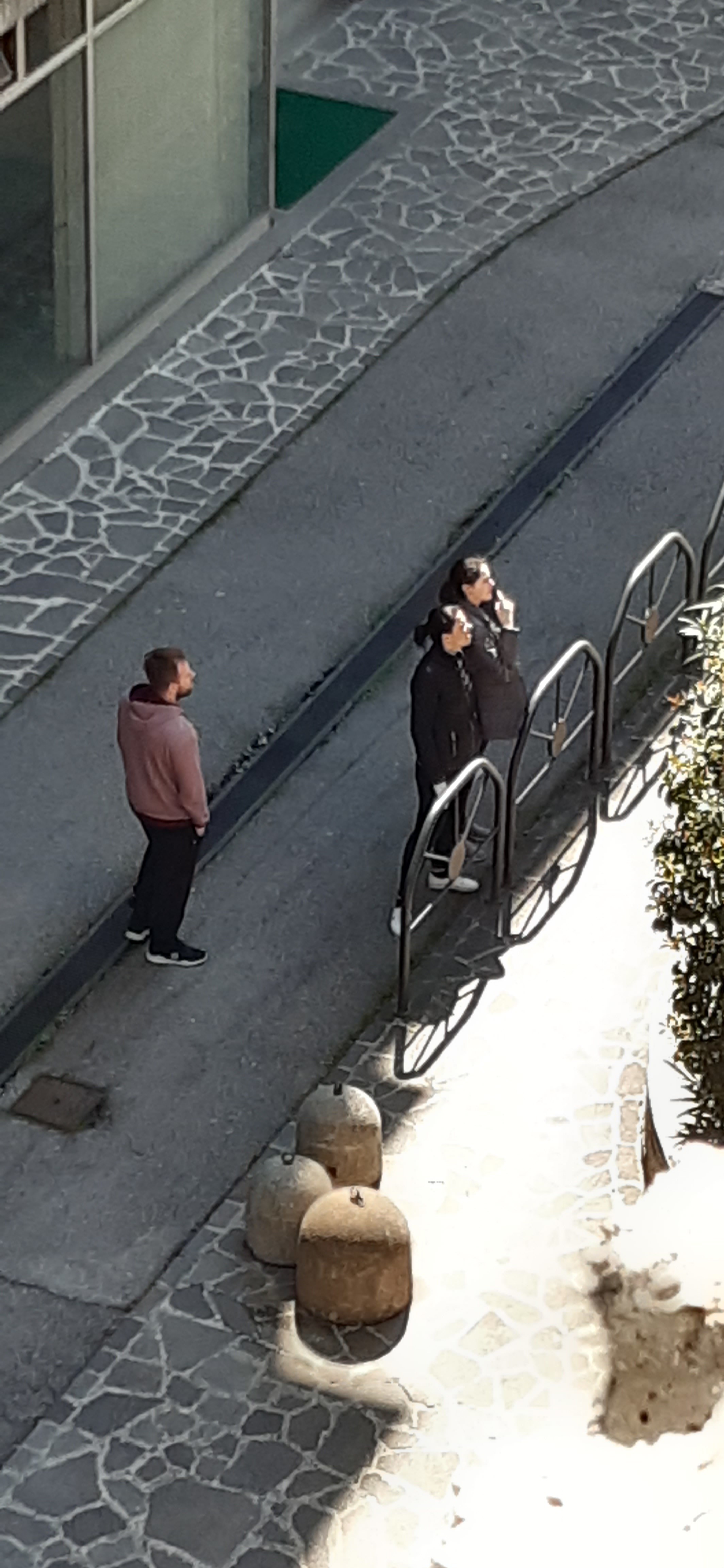 Gli altri piccioni nell’angolo verso il parco, sembrano “starving” , morenti di fame.