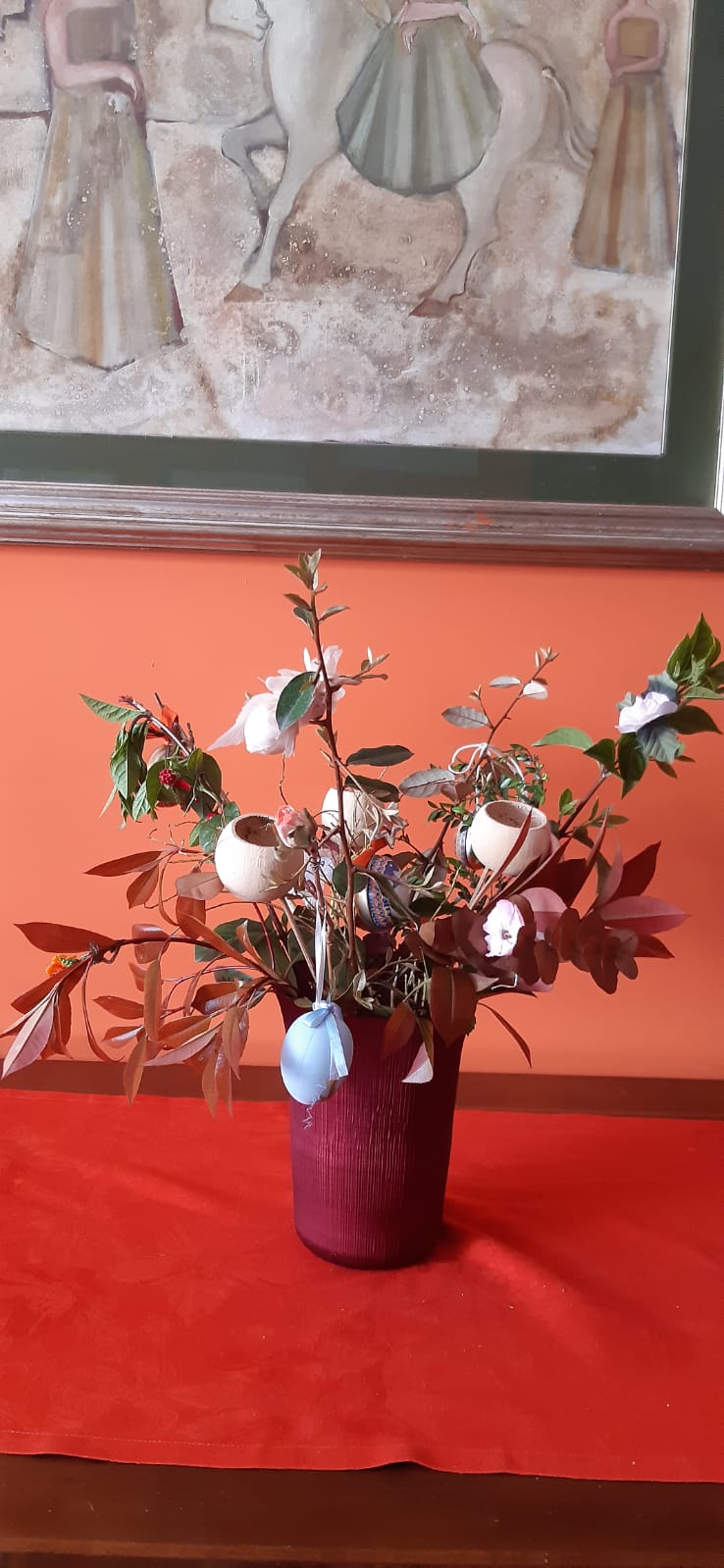 Ho fatto l’alberello di Pasqua, rubando qualche rametto dalle siepi di via Vannetti, mentre andavo a fare la spesa di frutta e verdura.