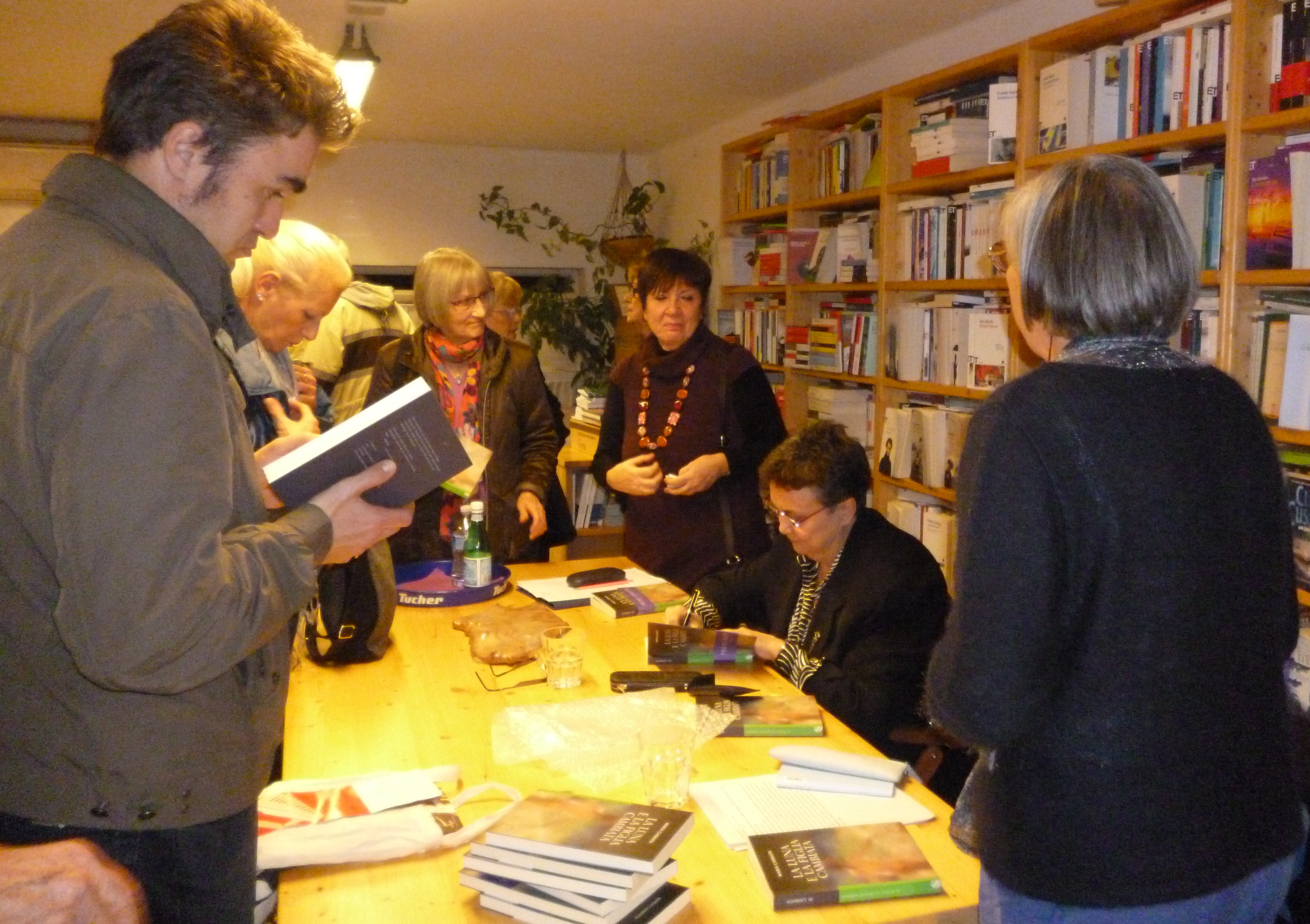 La saletta incorniciata dai libri è piena. Fuori il novembre trentino si oscura languidamente e  noi ci troviamo in un’atmosfera informale e calorosa. Il piacere dell’amicizia, della condivisione, dell’interesse verso una scrittrice che ci ha offerto con la sua storia emozioni, suggestioni e  poesia si può toccare con mano.