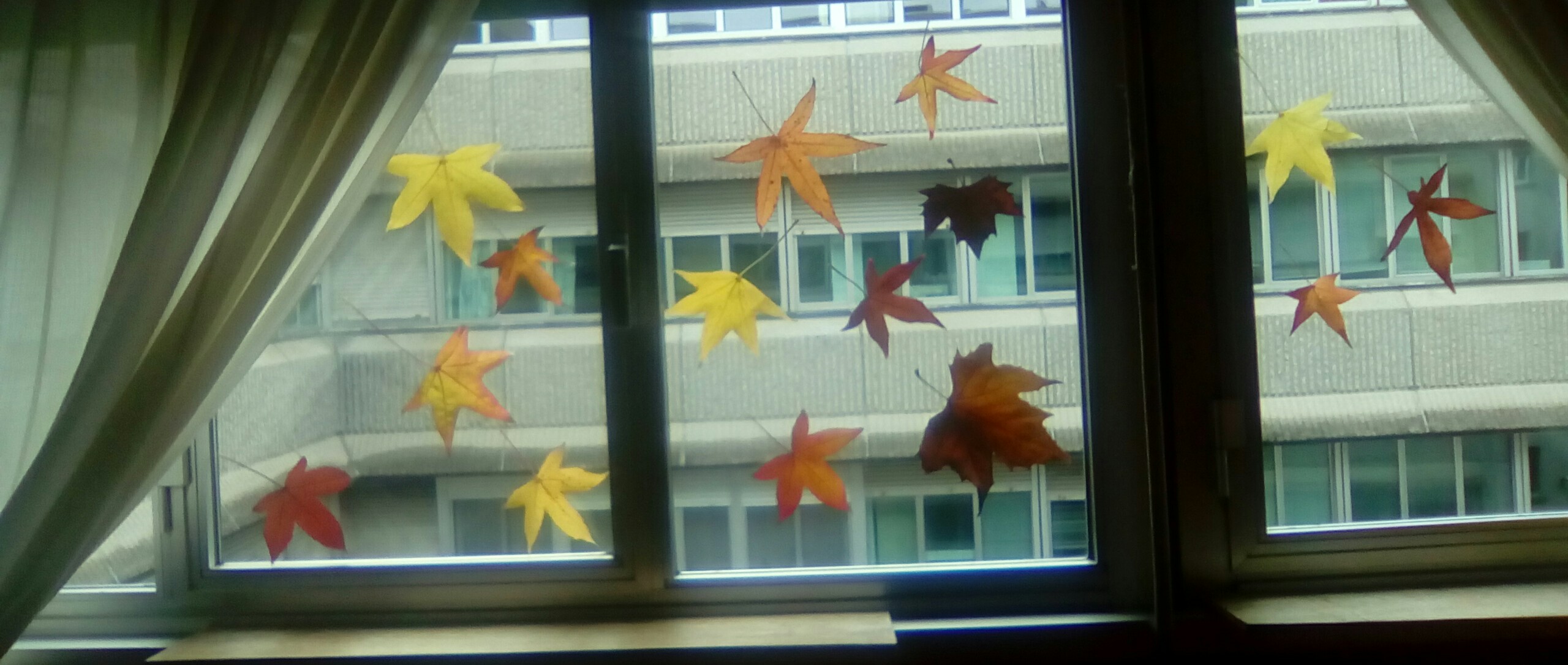 La prospettiva un bel libro, una tazza di tè, le foglie raccolte e appiccicate alle finestre…tutto